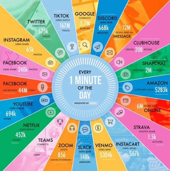 Dados não estruturados: não possuem qualquer estrutura pré-definida, constituem a maioria dos dados corporativos e são a maior parte das informações da Web (cerca de 90%). São exemplos relatórios, documentos, imagens, áudios e vídeos. A Web em 1 minuto: